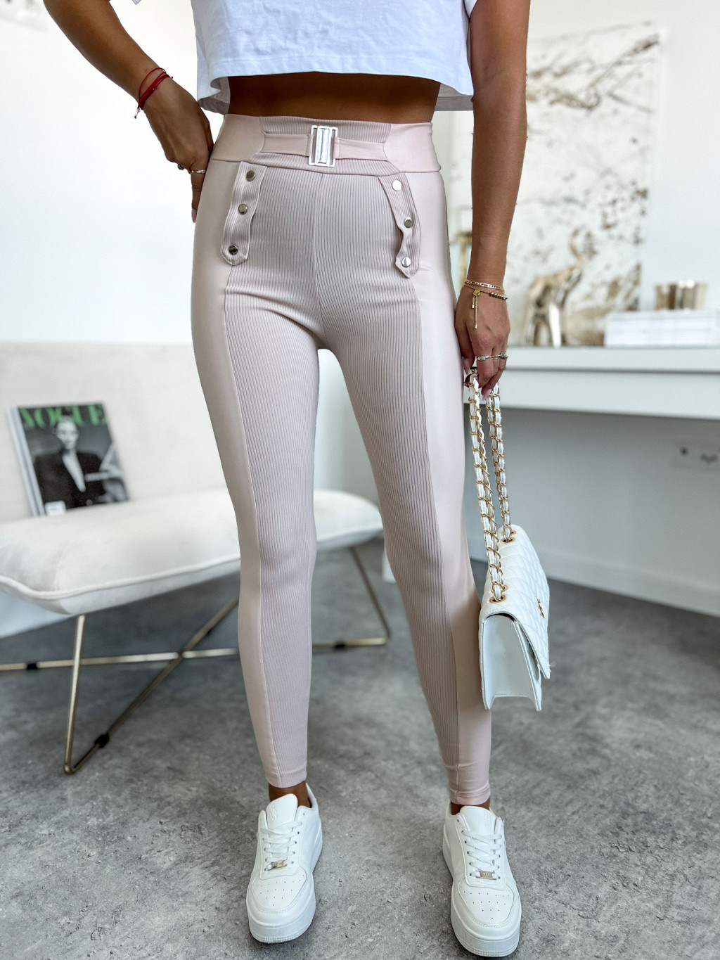 Pružné rebrované legíny s vysokým pásom v kombinácii s koženkou.