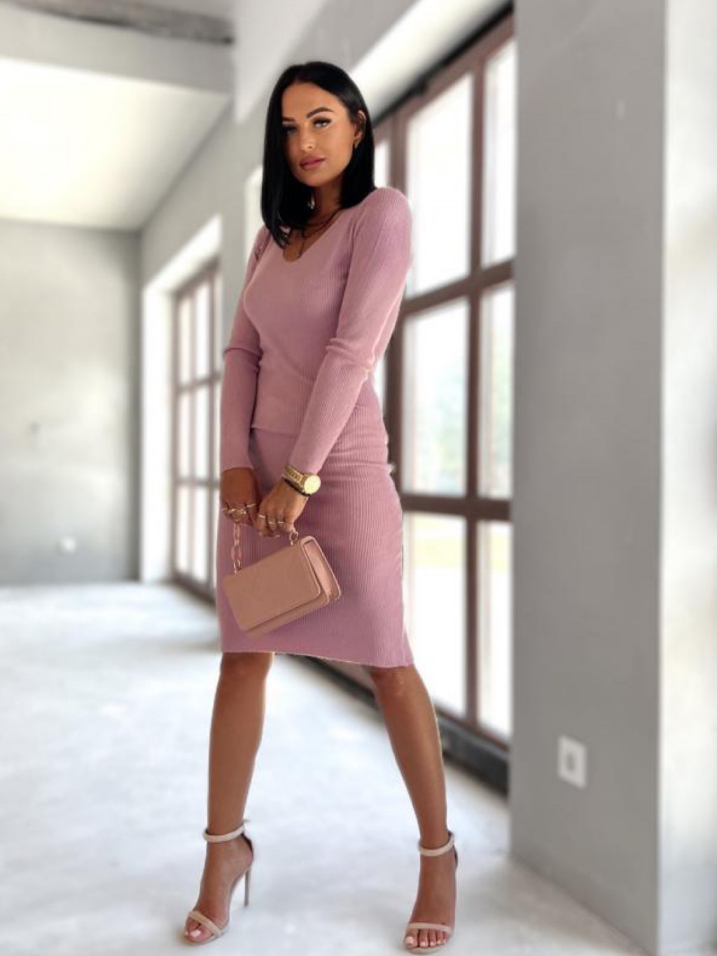 Pružné úpletové šaty s dlhým rukávom.