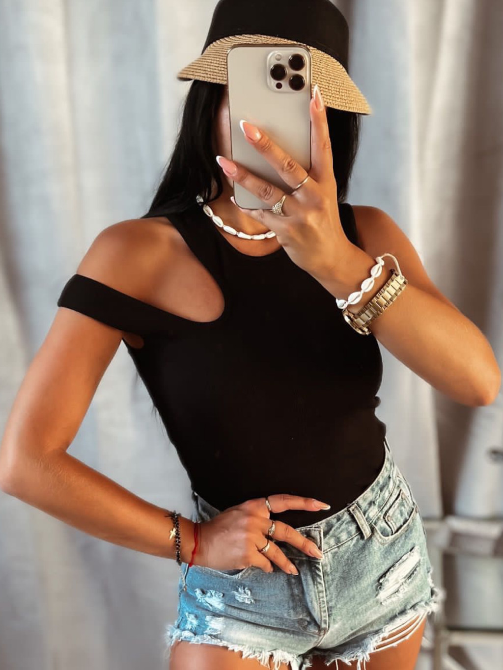 Bavlnený vrúbkovaný top s rafinovanými ramienkami.