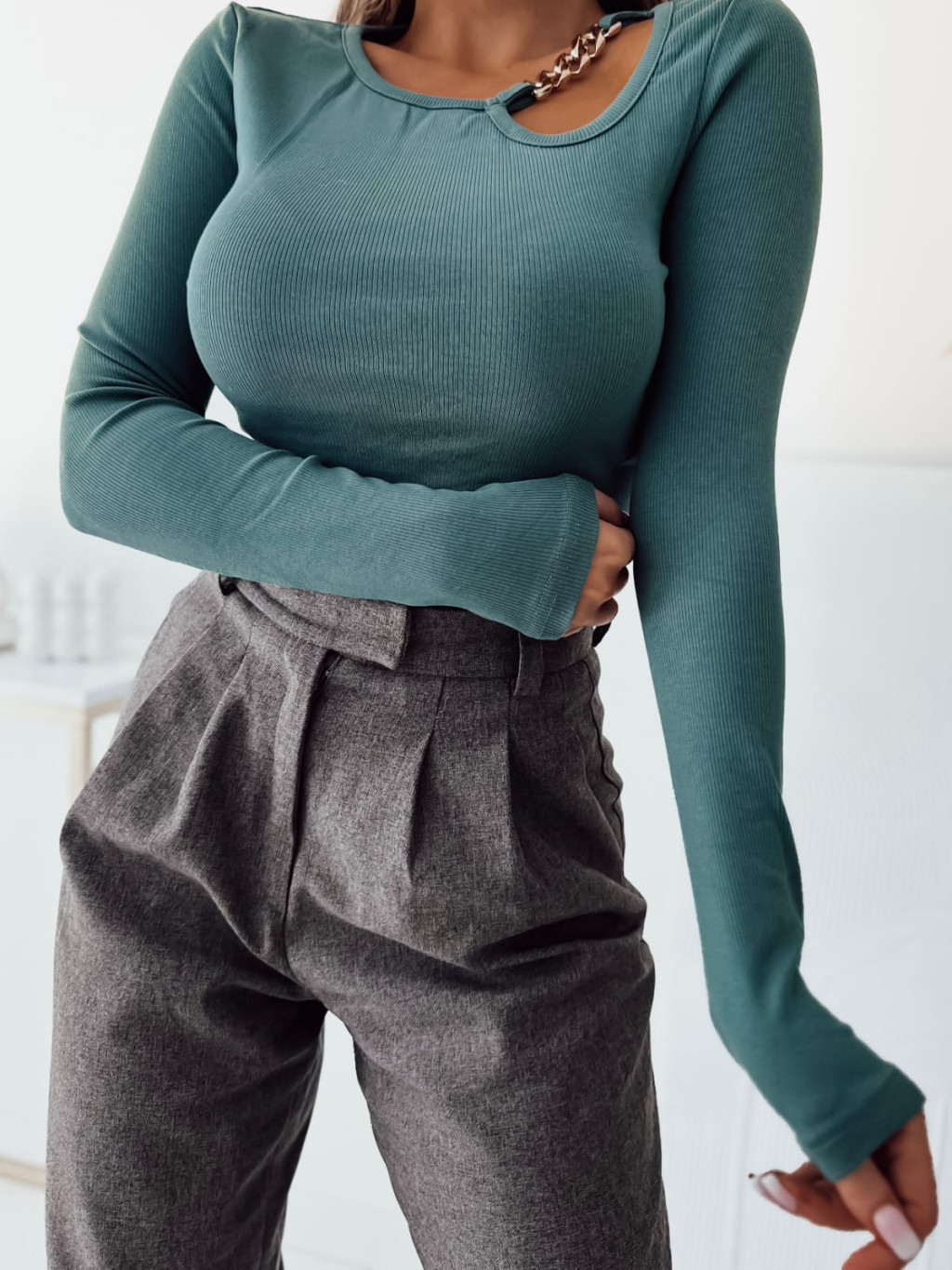 Elastický rebrovaný top s dlhým rukávom zdobený retiazkou.