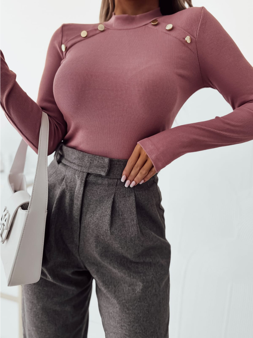Bavlnený rebrovaný top so stojačikom zdobený zlatými gombíkmi.