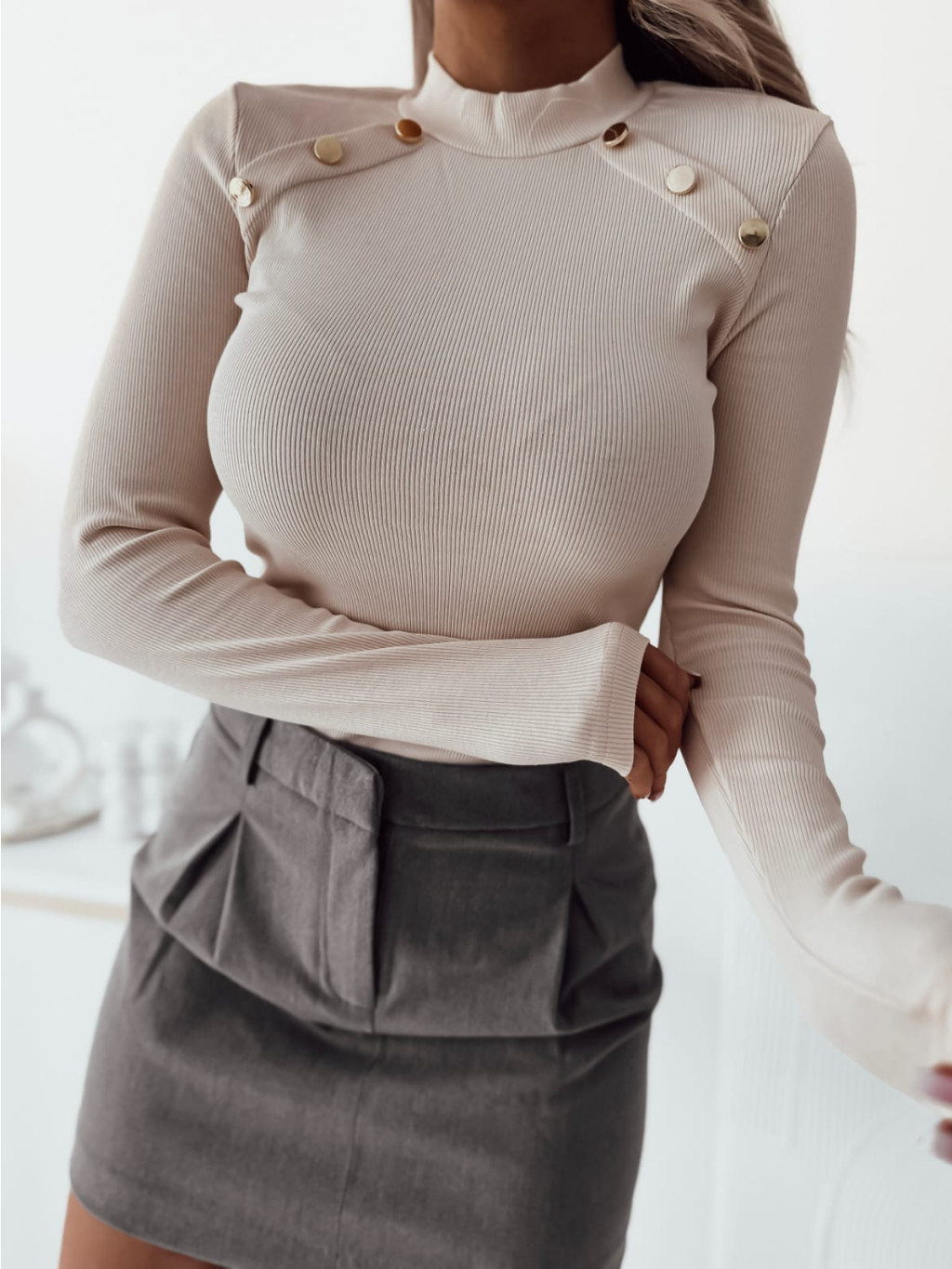 Bavlnený rebrovaný top so stojačikom zdobený zlatými gombíkmi.