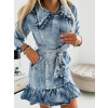 Štýlové volánové rifľové šaty s dvojradovým zapínaním na gombíky.