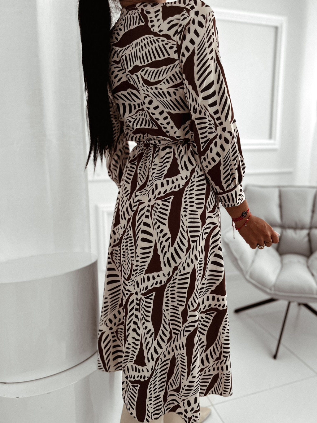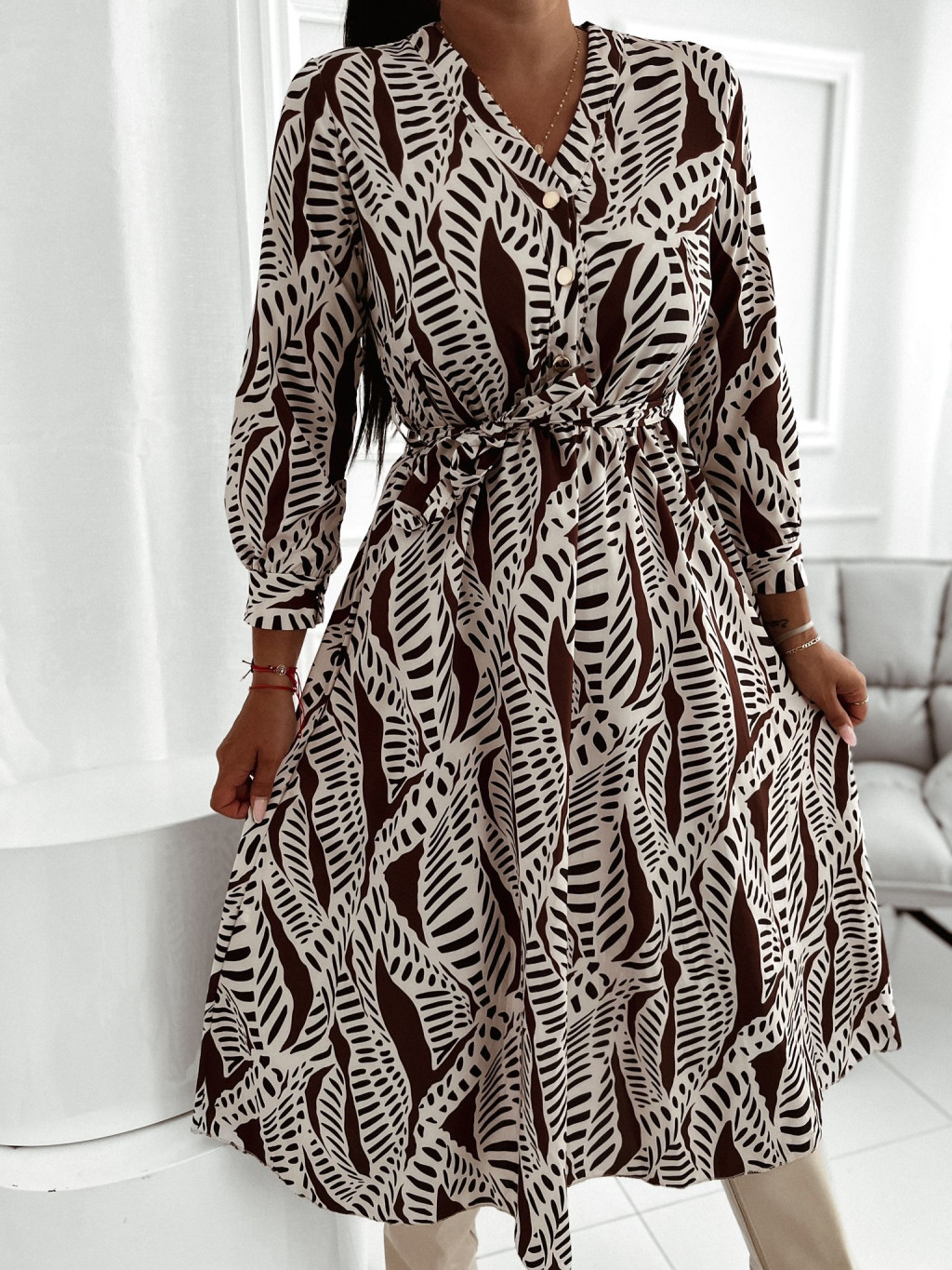 Vzorované midi šaty Cathelyn - hnedé