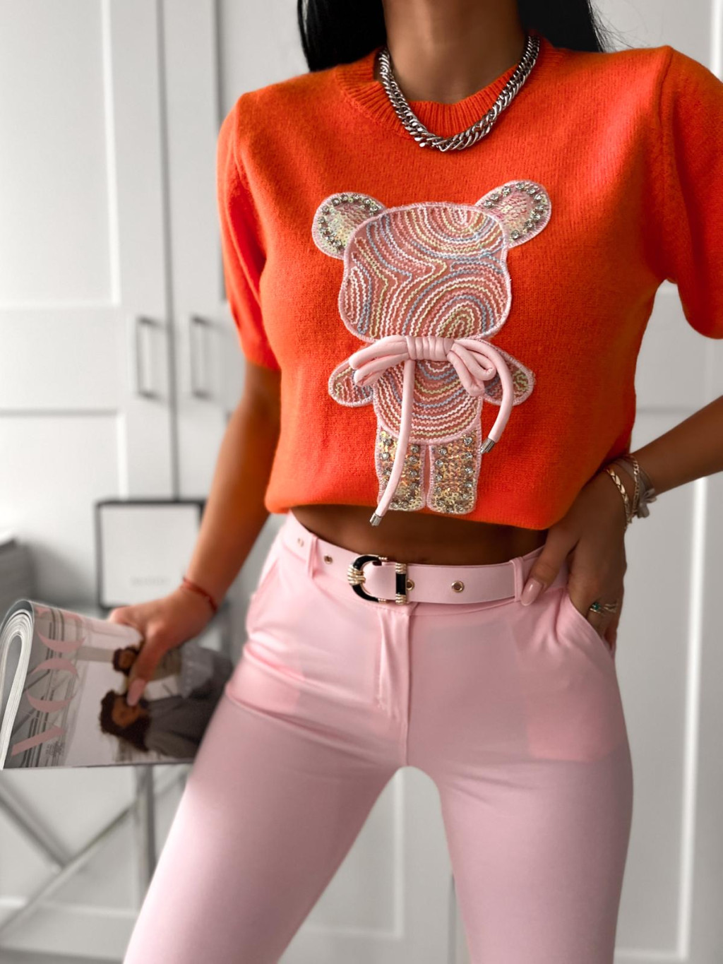 Kvalitný svetrík s krátkym rukávom zdobený 3D mackom.